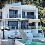 Villa Skalia Lefkada Athánion med 5 sovrum, som ligger inom 2 km från Egremni-stranden, har en terrass med utsikt över poolen. Villan med 5 badrum, som har utsikt över en privat pool, bjuder in gästerna att besöka Gialos-stranden, som ligger ungefär 10 minuters bilfärd bort.